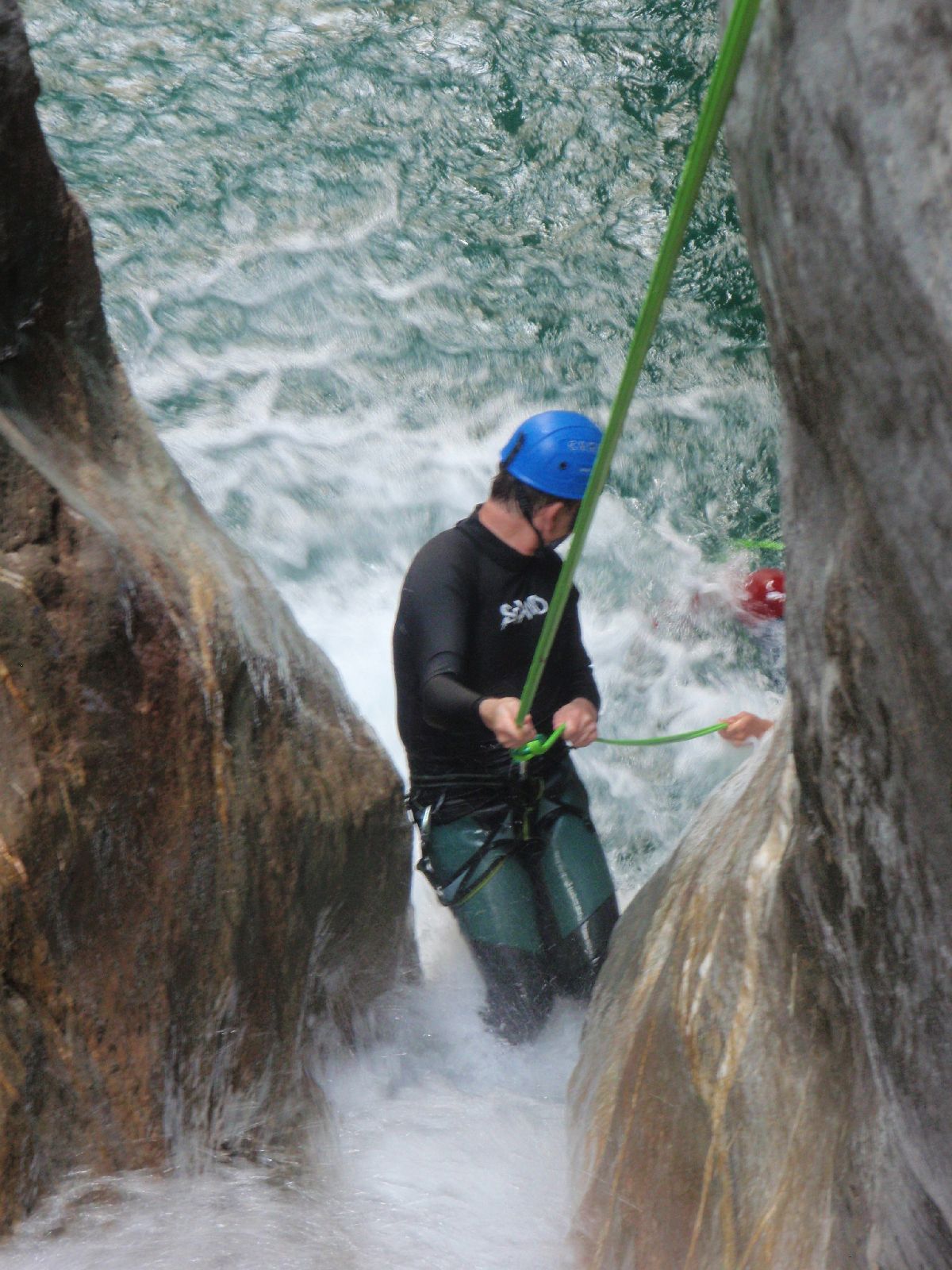 Miguel rapela por medio del caudal. Mi mano asoma abajo por si acaso...