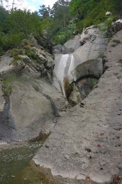 Pues eso, yo que presumo de conocer esta zona, resulta que desconocía que por encima de las Gloces, había otro barranco. Convenzo a Nacho y vamos a comenzar la jornada con este barranco. La aproximación en sí ya es una excursión interesante. Yo pensaba que sería sosa, pero resulta maja, cruzando un bosque mixto.